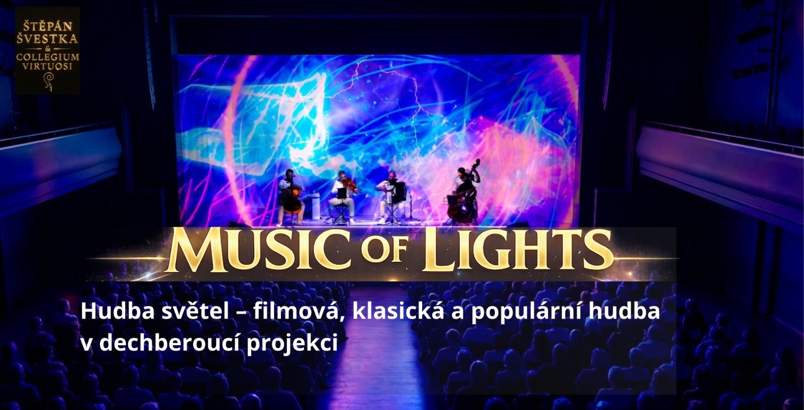 Music of Lights (Hudba světel) je zážitkový audiovizuální koncert, který propojuje živou hudbu a 3D světelné projekce. Scéna i vystupující se stávají jedním celkem, ve kterém světlo, pohyb a hudba splývají do jednotného uchvacujícího celku. Projekt nabízí strhující hudební cestu napříč populární, filmovou i klasickou hudbou. Díky originálním aranžím vzniká silný, emocionální program, který osloví široké publikum – od milovníků klasické hudby a soundtracků až po fanoušky současné popové scény. Spojení špičkového hudebního výkonu a vizuálně ohromující projekce zaručuje jedinečný zážitek, který diváci nikde jinde neuvidí.